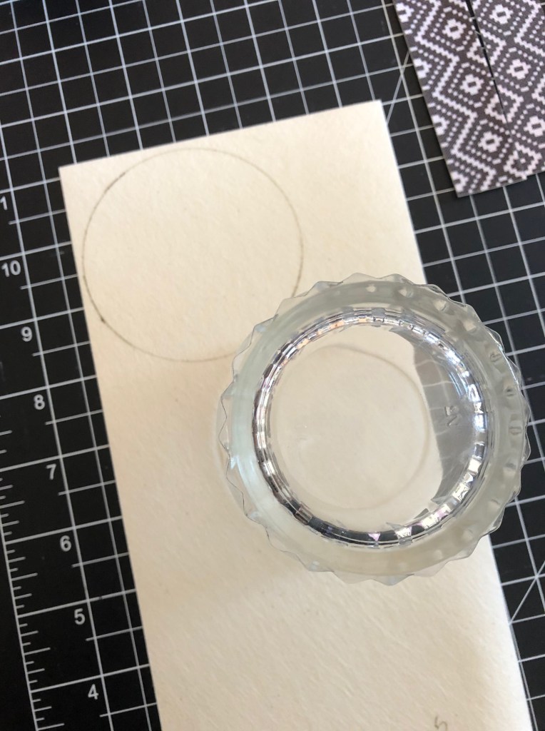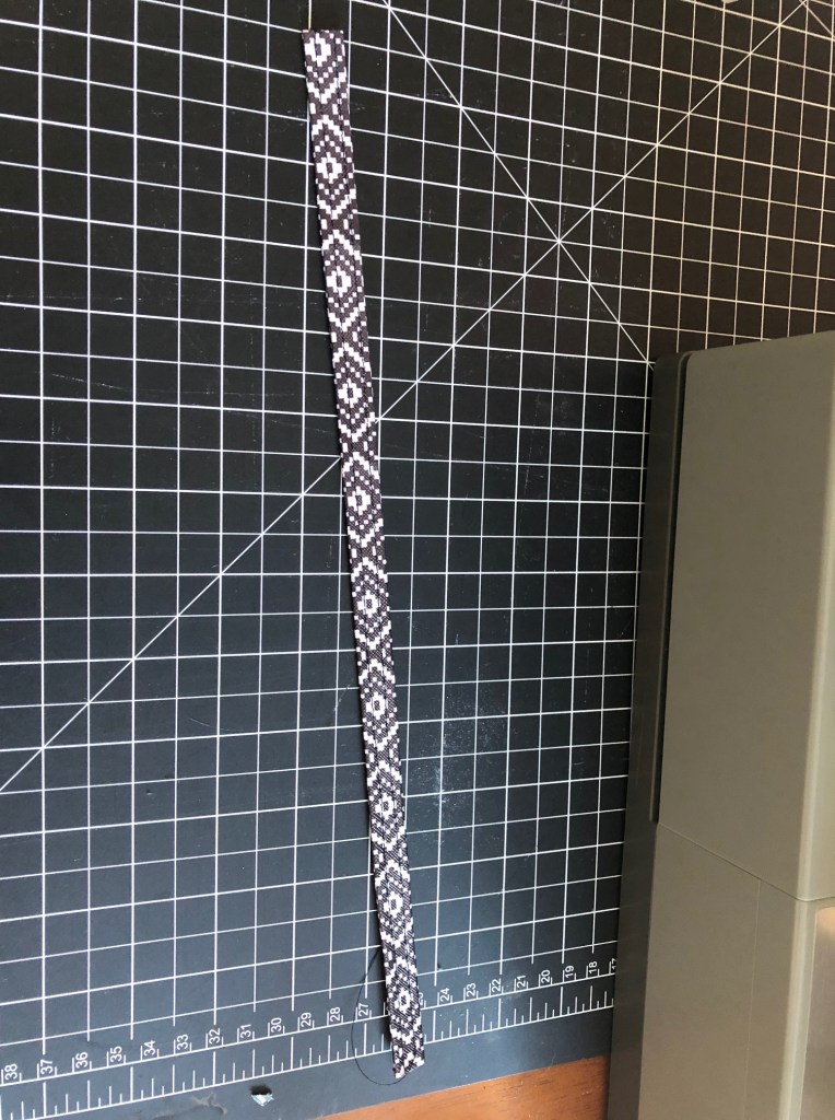 NOT PICTURED: me cutting three 1″ strips off the long end of the patterned piece and then three 1″ strips of the remaining short end. The end product can be seen below.