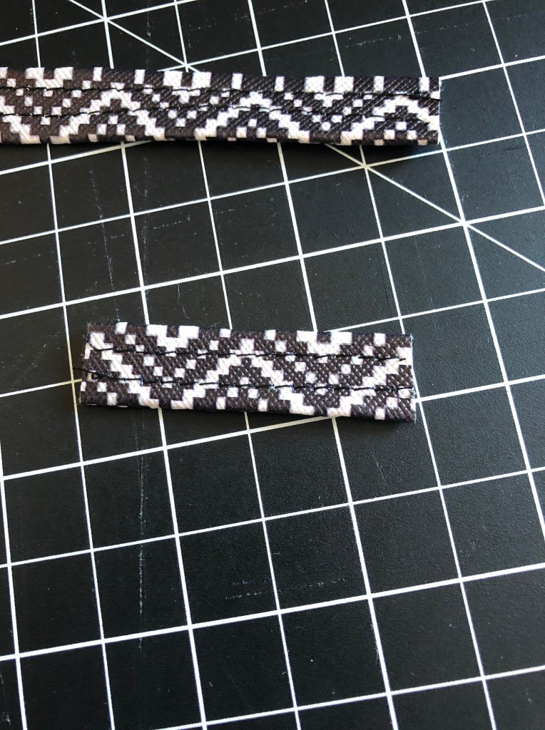 This is exactly the same process we used for the d-ring strap, only longer. Fold the sides into the middle, stitch down each side.