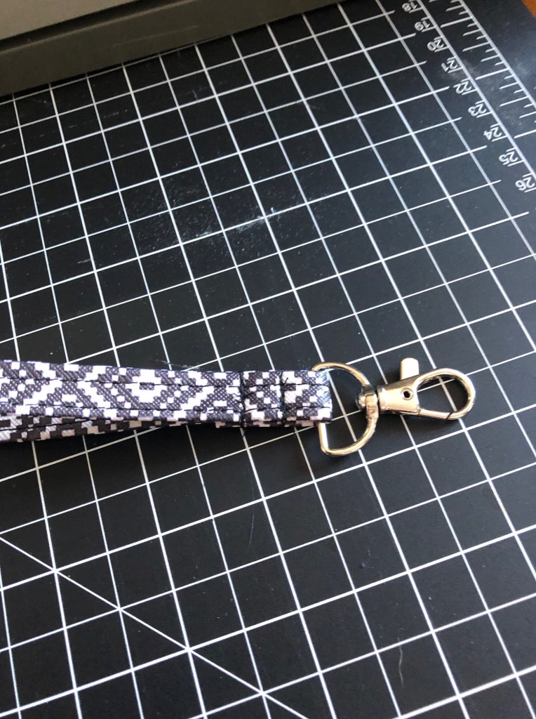 Fold this in half, with the d-ring in the center. Clip it together so the ring doesn’t take a hike down a heating vent.