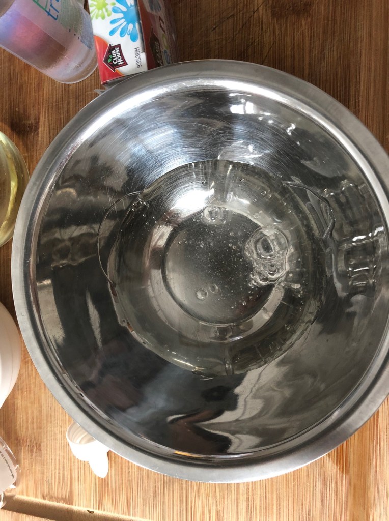 I’m only doing a version with contact solution in this post. Eventually I’ll crack open that box of borax under the kitchen sink, or try laundry detergent (assuming mine has the appropriate ingredients) but for today, we’re dealing with contact solution.